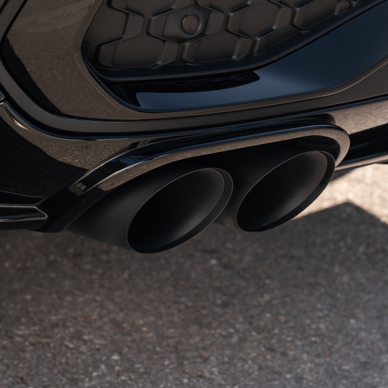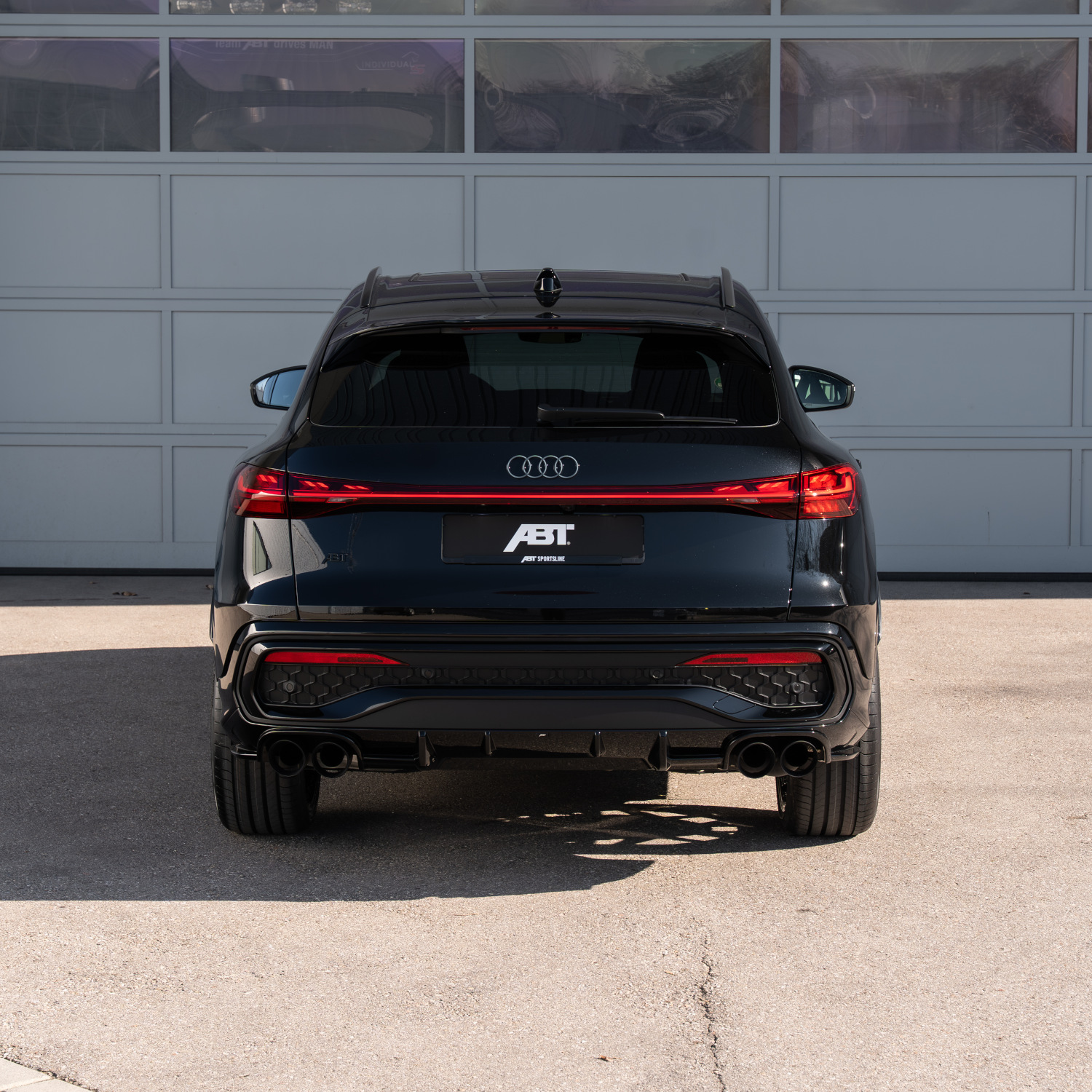 Vier ABT Endrohrblenden aus Edelstahl in matt schwarz (Durchmesser 102 Millimeter) setzen am Heck ein unübersehbares Statement. Sie unterstreichen den sportlichen Charakter und machen die gesteigerte Performance auch visuell erlebbar.