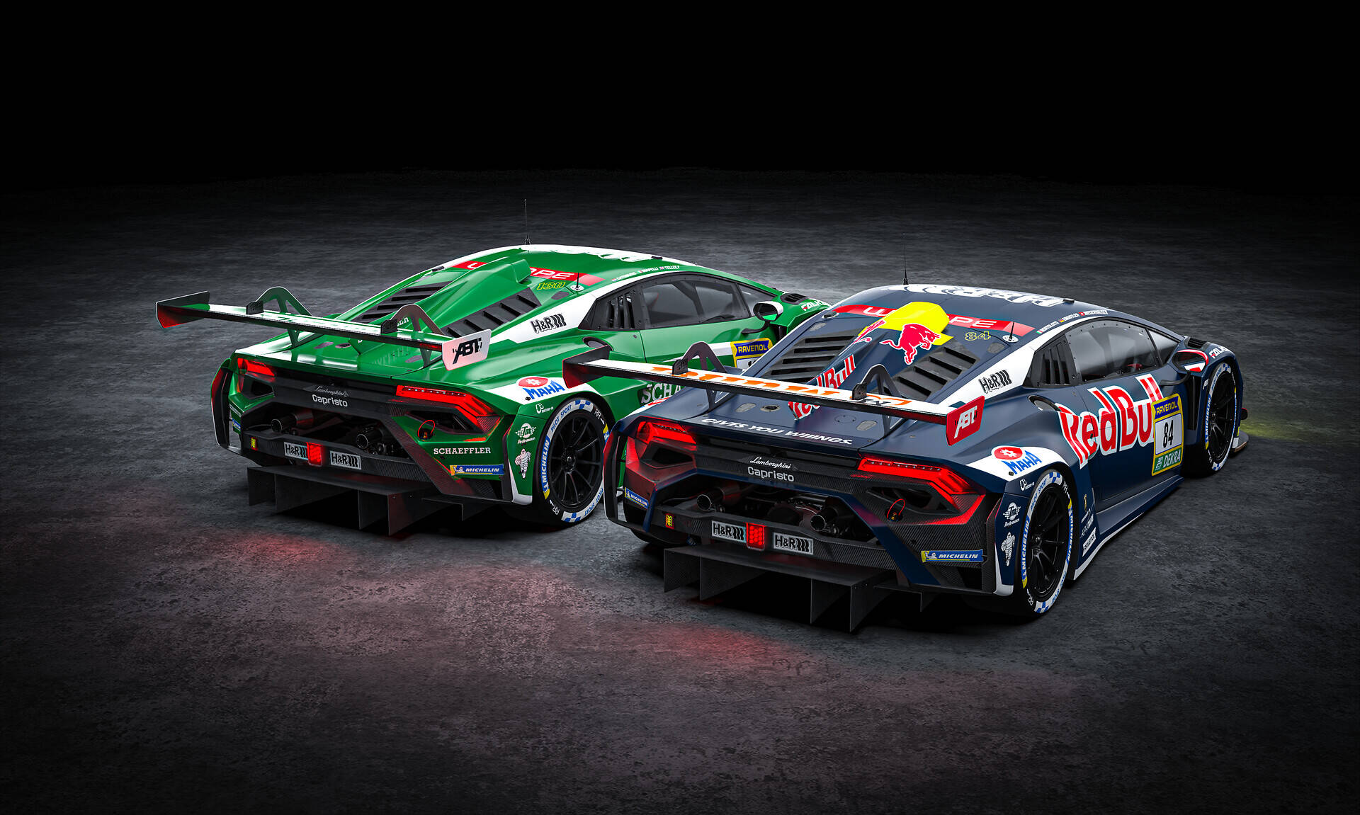 Den Schaeffler-Lamborghini mit der Startnummer 130 pilotieren Marco Mapelli (Italien), Nicky Catsburg (Niederlande) und Nick Yelloly (Großbritannien). Im Red Bull-Lamborghini mit der Startnummer 84 sitzen Mirko Bortolotti (Italien), Luca Engstler (Deutschland) und Patric Niederhauser (Schweiz). Dass mit Mapelli, Bortolotti, Engstler und Niederhauser gleich vier Lamborghini-Werksfahrer zum Aufgebot gehören, unterstreicht einmal mehr die enge Partnerschaft zwischen ABT und der italienischen Marke. „Wir freuen uns, dass wir erneut eine so schlagkräftige Mannschaft zusammenstellen konnten", sagt Martin Tomczyk. „Die Kontinuität mit unseren Rückkehrern gibt uns Stärke und die Neuzugänge bringen frischen Schwung sowie zusätzliche Erfahrung mit. Alle wollen das Gleiche: Dieses Rennen gewinnen."